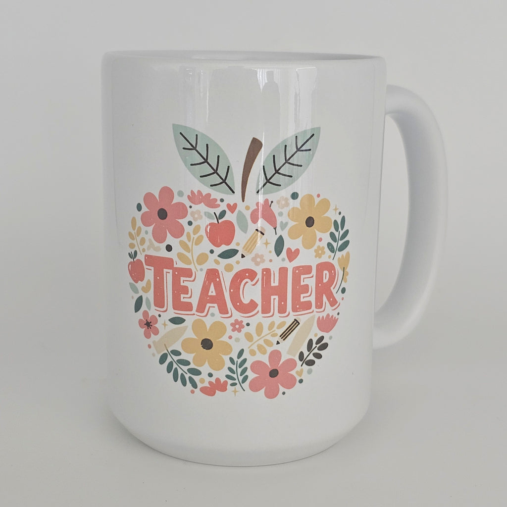 Teacher Gift Mug – Floral Apple Design – 450ml